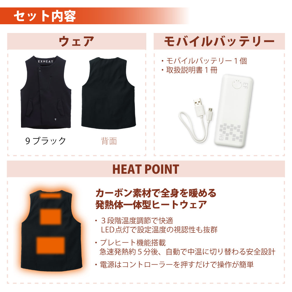 EXHEAT すぐ着られるセット EH32490 RD9241 カーボンヒートベスト
